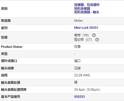 0503518000 MOLEX 插口 触点 锡 22-28 AWG 压接